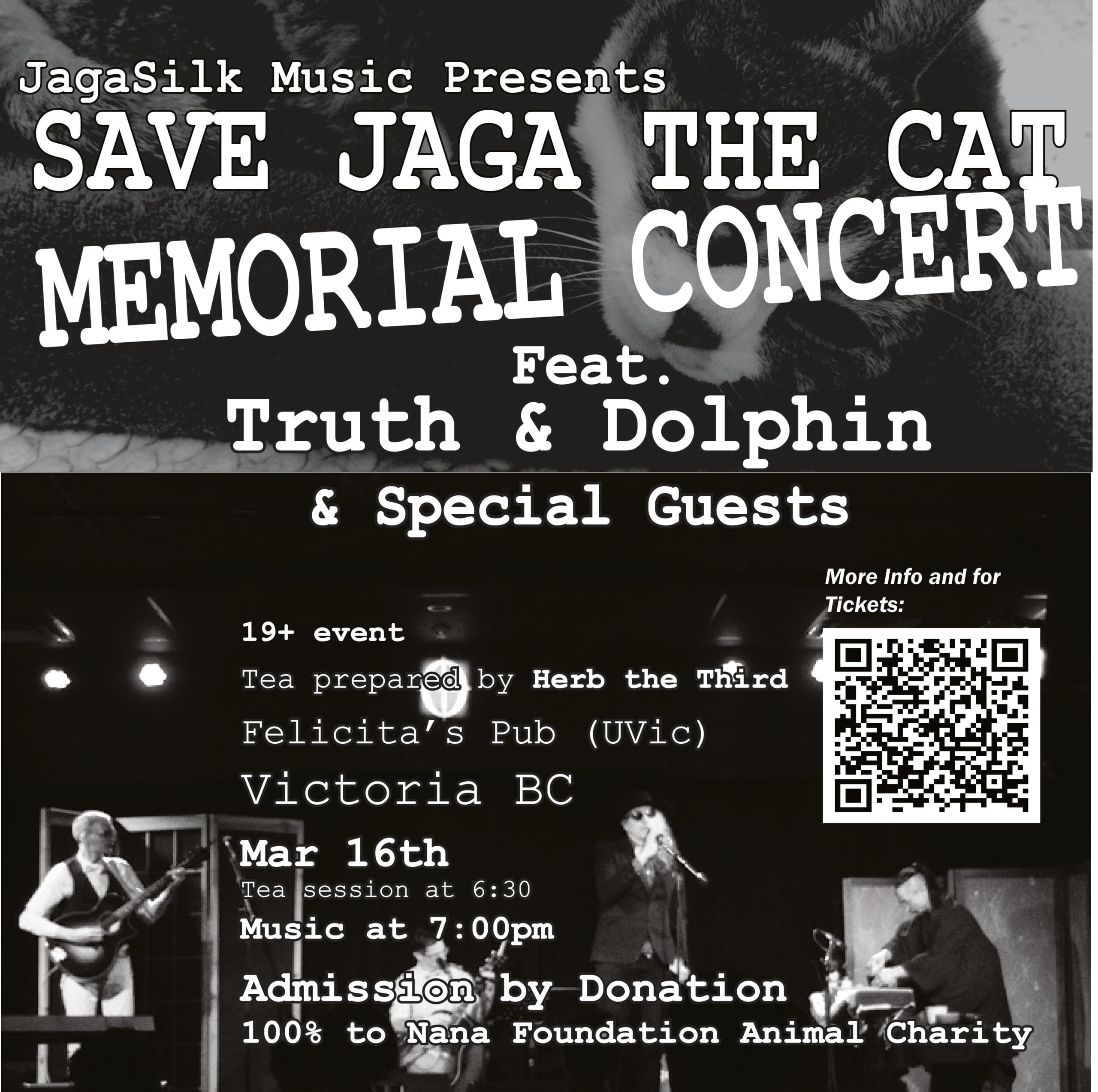Save Jaga the Cat Memorial Concert VICTORIA BC @ Felicita’s Pub – Monday March 16 2026 $10.00 Learn More